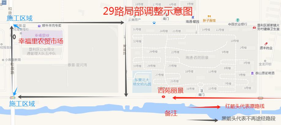 二、29路:首末站由“幸福里農貿市場”臨時調整為“西苑麗景”。不再途經幸福里農貿市場站點。