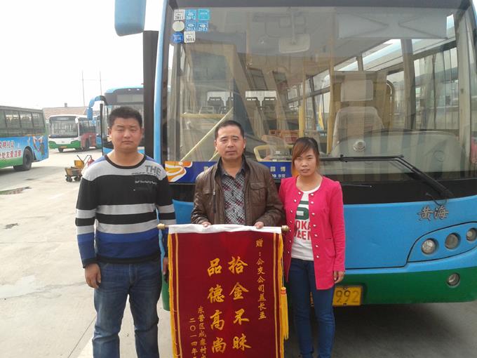 4月2日,家住郝家鎮(zhèn)郝家村的成艷艷拿著一面寫有“拾金不昧、品德高尚”的錦旗來到市公交公司汽車四隊(duì),感謝車隊(duì)駕駛員蓋長孟師傅拾金不昧的高尚品德。東營日?qǐng)?bào)黃河口晚刊的記者也來到車隊(duì),采訪了蓋長孟師傅。