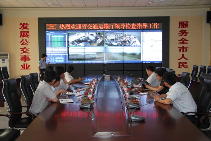 市公交公司經(jīng)理朱新民首先簡(jiǎn)要介紹了東營(yíng)公交智能調(diào)度系統(tǒng)以及3G視頻監(jiān)控系統(tǒng)的建設(shè)和使用情況,隨后由工作人員將智能調(diào)度系統(tǒng)和3G視頻監(jiān)控系統(tǒng)的多項(xiàng)功能向李處長(zhǎng)及各位領(lǐng)導(dǎo)進(jìn)行了詳細(xì)的講解和演示。