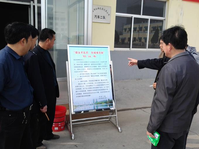 今年4月是全國第25個(gè)全國愛國衛(wèi)生月,活動(dòng)的主題是“美麗中國•健康中國——摒棄亂吐亂扔陋習(xí)”。為了控制吸煙危害,保障每位員工的健康,保護(hù)公司環(huán)境衛(wèi)生,預(yù)防火災(zāi)發(fā)生,積極為公司創(chuàng)城工作做貢獻(xiàn)。近日,市公交公司汽車二隊(duì)開展了“煙頭不亂扔,創(chuàng)城做貢獻(xiàn)”倡議活動(dòng)。