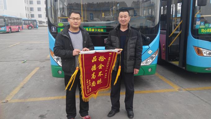 3月8日,萊商銀行的李先生拿著一面寫有“拾金不昧、品德高尚”的錦旗來到市公交公司汽車一隊,感謝3路駕駛員王勝松師傅拾金不昧的高尚品德。據車隊了解得知,2月13日晚上19時,李先生乘坐王勝松師傅駕駛的3路車來到東城,下車后發現裝有1600元現金和多張銀行卡的錢包忘在公交車上。次日,李先生抱著試試看的想法來到市公交公司汽車一隊,詢問得知駕駛員王勝松師傅已將裝有1600元現金的錢包上繳車隊,車隊工作人員也在想辦法聯系失主。
