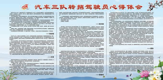近日,市公交公司為鍛造基層車隊學比趕超的濃厚工作氛圍,促進廣大職工進一步轉變工作作風,做到學有榜樣,趕有目標。汽車三隊組織2014年度公司轉招的駕駛員書寫了“轉招駕駛員工作經驗及心得體會”,并制作成展板放在辦公樓大廳,供全體職工瀏覽觀看,激發大家從中學習轉招人員工作中那種安全駕駛、優質服務、樂于助人、團結同事的良好工作態度,以及低調務實、任勞任怨、埋頭苦干、持之以恒、頑強拼搏的進取精神,以此推動車隊整體工作再上新臺階。