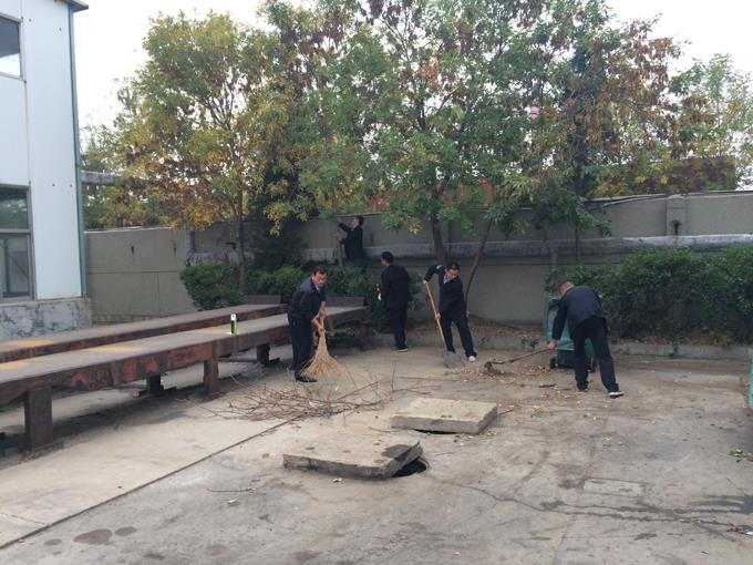 衛(wèi)生大掃除中,他們或三人一伙,或五人一組,有的負(fù)責(zé)修剪參差不齊的綠化帶,有的負(fù)責(zé)清理枯黃的雜草,有的負(fù)責(zé)拿著垃圾袋拾撿煙頭,有的負(fù)責(zé)清掃被風(fēng)卷到墻角的垃圾,有的負(fù)責(zé)裝卸和拖運(yùn)垃圾箱,一個(gè)個(gè)忙的滿頭大汗,即使飛揚(yáng)的塵土沾滿了衣服也全然不顧,令人為之動容。