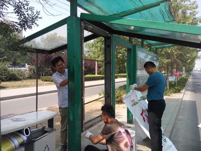 國慶前夕,市公交公司廣告部利用一周的時間,對部門所負責的車輛廣告,候車廳廣告及站牌設施進行逐一排查,對畫面破舊損壞的廣告立即進行拆除和更換,對候車廳、站牌等設施的衛生進行檢查,發現有達不到創城要求的現象,相關人員立即進行處理、改進,確保排查過后廣告畫面整潔美觀、站牌設施標識清楚完整。