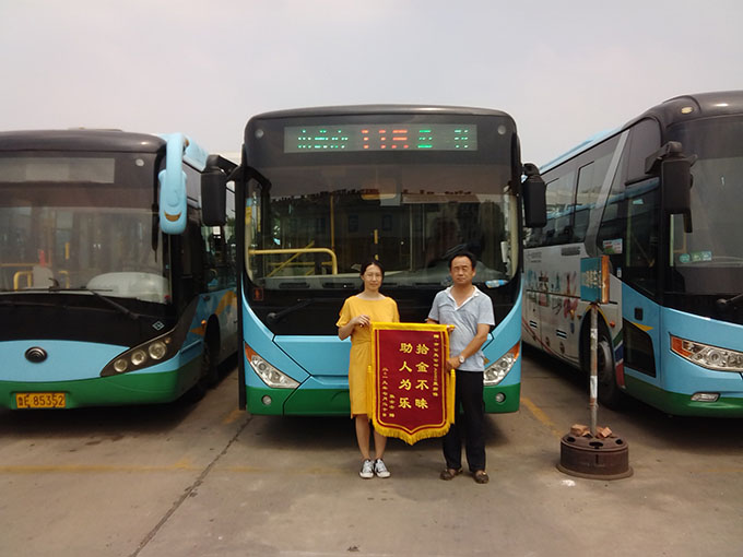 迎著蒙蒙細雨,家住陽光100小區的張女士拿著一面寫有“拾金不昧、助人為樂”的錦旗來到市公交公司汽車一隊駐地,感謝公交車駕駛員藍新啟師傅拾金不昧的高尚品德。