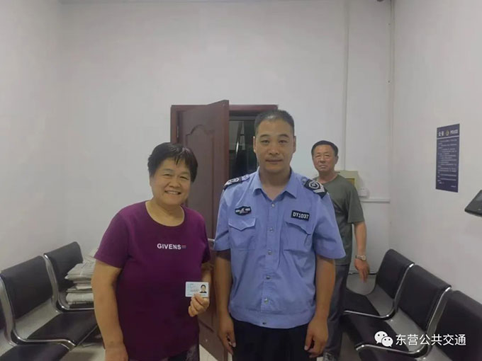 經了解,在7月7日下午,蘇文海師傅執行51路運行任務,行至廣饒家樂購物中心站時,在車內發現一個棕色皮包,經檢查內有現金800余元、銀座購物卡2000元和金手鏈等貴重物品,蘇文海師傅及時聯系了車隊值班調度,并對物品進行妥善保管。直到晚上8點半,終于聯系到了失主,并約定到廣饒街道派出所進行交接。蘇文海師傅第一時間趕去了派出所,在街道民警的見證下核實了對方身份,并把失物歸還了失主。