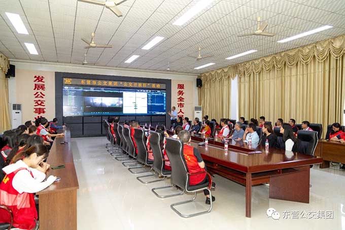 啟動儀式結(jié)束后,大家統(tǒng)一乘公交車來到市公交集團,參加東營市“公交開放日”活動,現(xiàn)場觀摩了市公交智能調(diào)度指揮中心、客服中心以及汽車一隊,詳細了解了智慧公交系統(tǒng)建設(shè)、公交業(yè)務(wù)辦理、車隊日常運營等情況,真正“零距離”“面對面”接觸公交、感受公交。