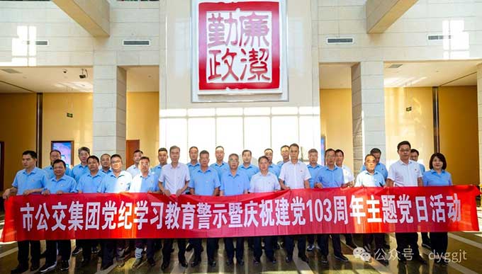 為慶祝建黨103周年,縱深推進全面從嚴治黨,努力推動黨紀學習教育走深走實,教育引導廣大黨員干部堅定理想信念,牢記使命宗旨,筑牢紀法底線,2024年6月27日下午,市公交集團組織黨員干部赴市廉政教育中心開展黨紀學習教育現場警示暨慶祝建黨103周年主題黨日活動,集團公司黨委成員、各支部書記及各部門單位主要負責同志參加。