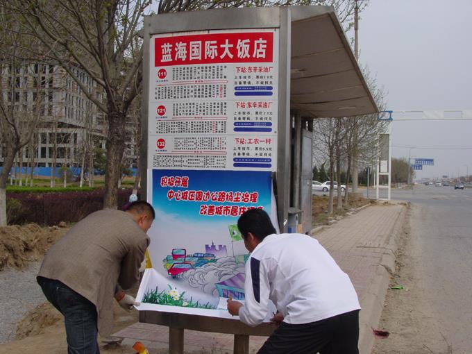 近日,市公交公司廣告部根據(jù)全市創(chuàng)建全國文明城市工作要求,按照公司創(chuàng)城工作部署,積極行動,精心設計制作了以節(jié)能環(huán)保、倡導低碳等內(nèi)容的公益廣告畫面張貼在500余個市區(qū)公交站牌上。豐富生動、賞心悅目的廣告畫面,不僅讓乘客在候車之余感受到了一份清新自然的愜意,也讓廣大市民進一步提升了節(jié)能減排、保護環(huán)境的自覺意識,營造了濃厚的創(chuàng)城氛圍,有力的推動了我市創(chuàng)建全國文明城市和生態(tài)文明典范城市的建設步伐。