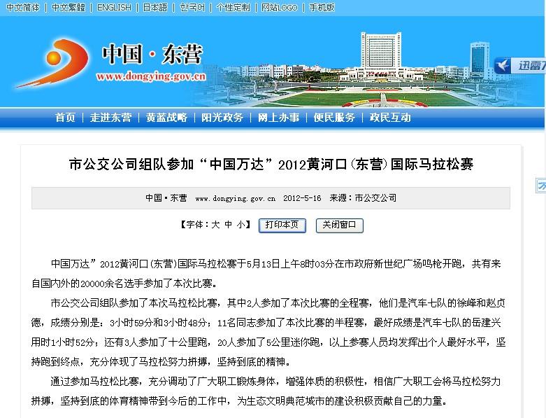2012年5月21日東營市政府網站報道