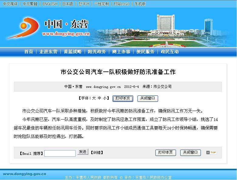 2012年6月4日東營市政府網站報道