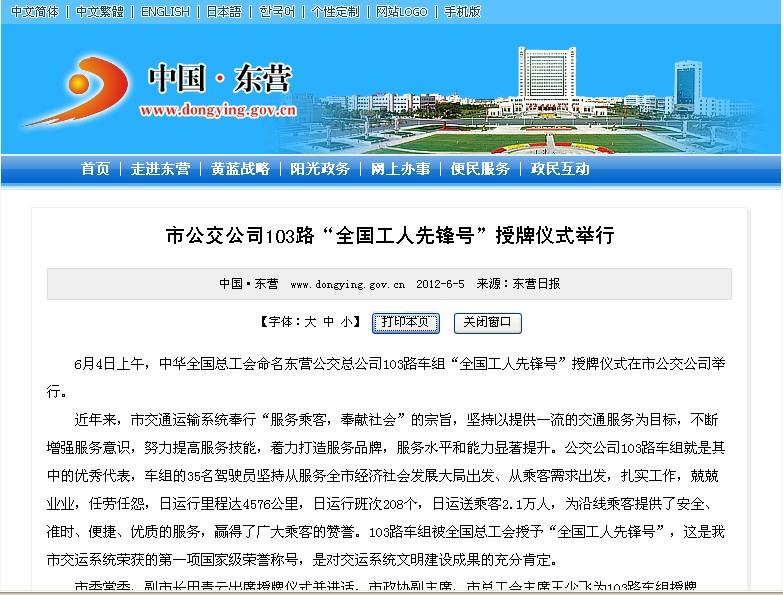 2012年6月4日東營市政府網站報道