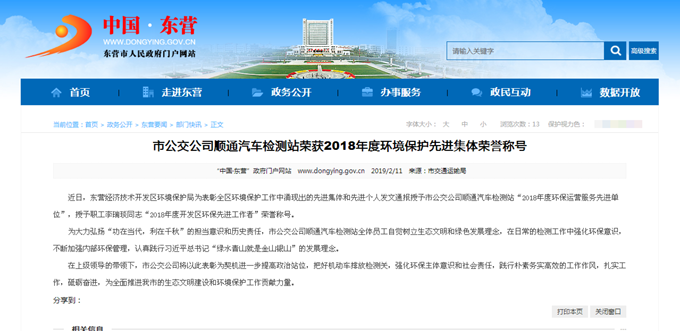 2019年2月18日東營市政府網(wǎng)站報道